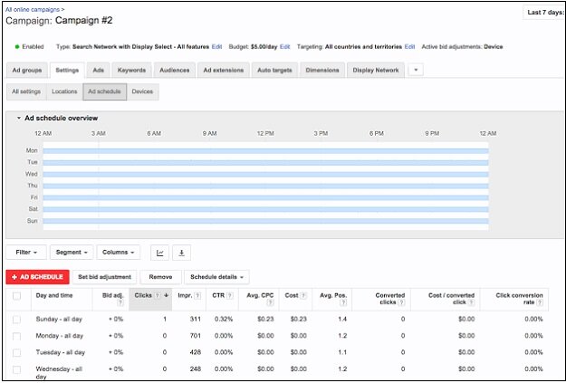 In AdWords, not all traffic is created equally. You may run a campaign for a week through which you can discover the timing the ad runs better. By running for a week, you can conclude the useless clicks and can understand the ads much better converting time.