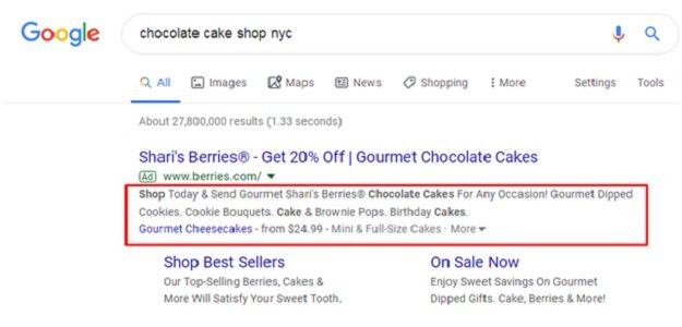 The highlighted box in the screenshot is generally called as ad copies. In the mentioned image, you can witness how they had done the copy. It’s an additional credit to click when the copy highlights the price to the user before clicking.