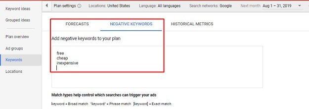 Consider some people may surf for “cheap personal injury marketing services.” If your company is not interested in offering cheap service, you can add “cheap” to the negative keywords list. You can save your money by avoiding unnecessary clicks.